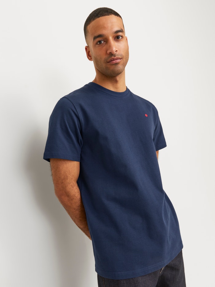 This basic T-shirt is a wardrobe essential that works well with jeans, shorts, and trousers.